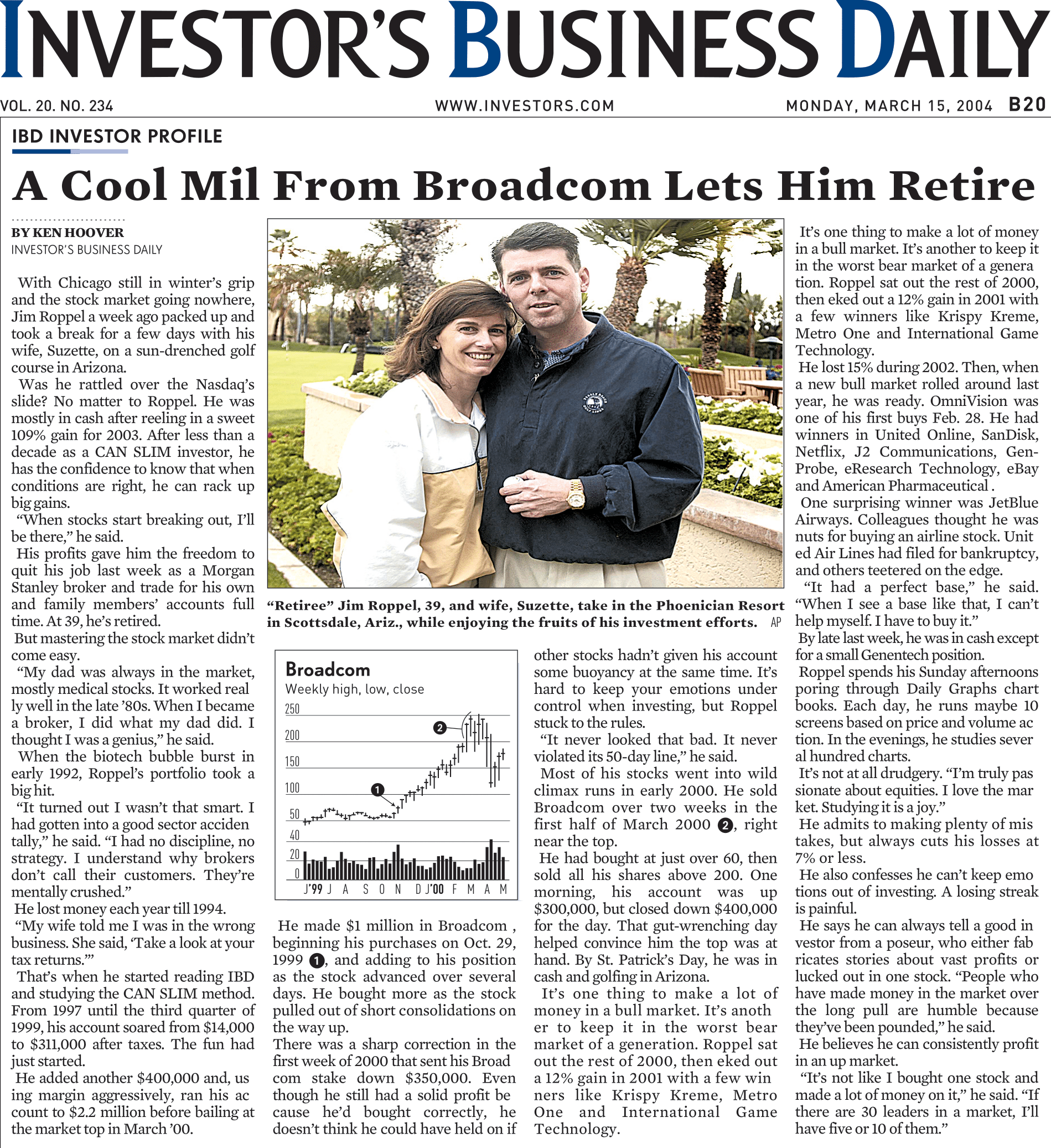 总体来说,Jim Roppel的风格是纪律性强、耐心、基本面+技术面结合的成长股波段/趋势交易,目标是抓住少数真正爆发的“超级赢家”来实现复合高回报,而不是追求高频或小波段利润。他自称“我不那么聪明,我只是趋势跟随者”(I’m just a trend follower),强调适应市场而非对抗。